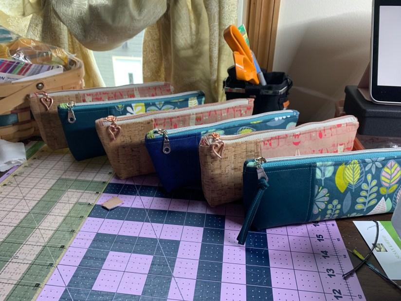Not yet ready for prime time (as in selling), but I am gathering momentum. Creating new designs; buying interfacing and fusible fleece by the bolt, cork by the meter and yard, zippers by the yard, hardware by the handful; submitting the best to contests; sewing three or four bags at a time; signing up for craft shows and submitting for holiday gallery sales.